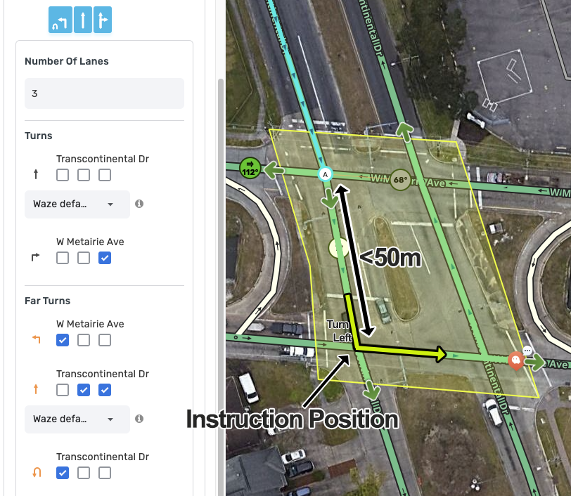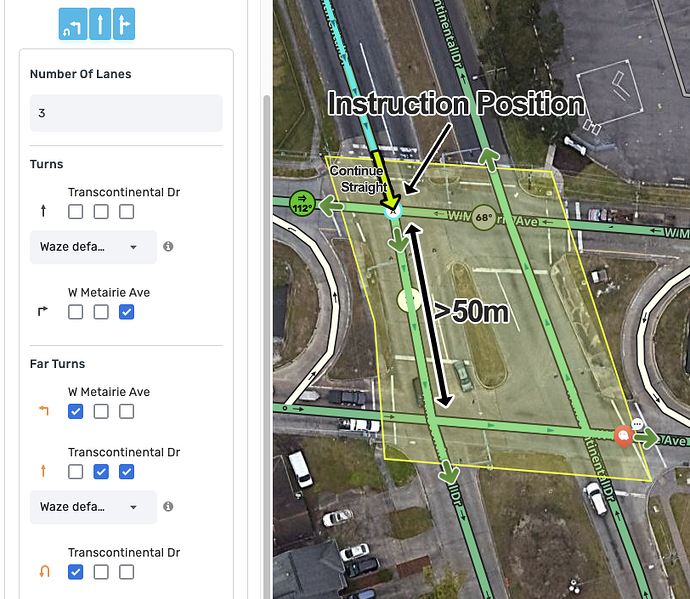 - Far Lane guidance is unique, it’s impossible to create multiple “paths’ between an entry and an exit segment.