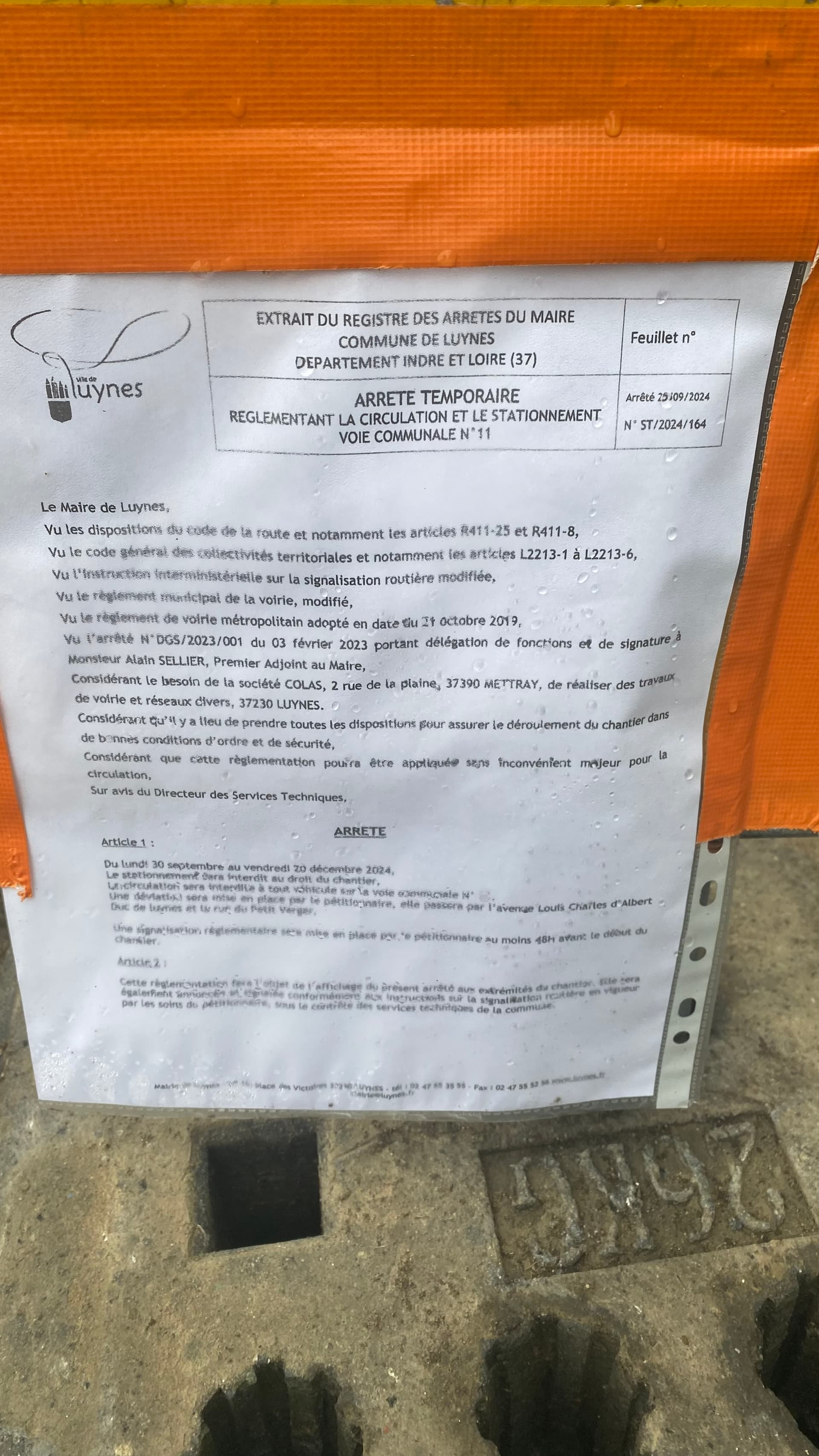 - Département/Ville/Rue : Indre et Loire, Luynes, Route de la Barbinière