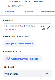 La vía deberá marcarse del tipo “Privada”, en lo posible con su entrada/salida real y que al mismo tiempo pase por el surtidor más cercano