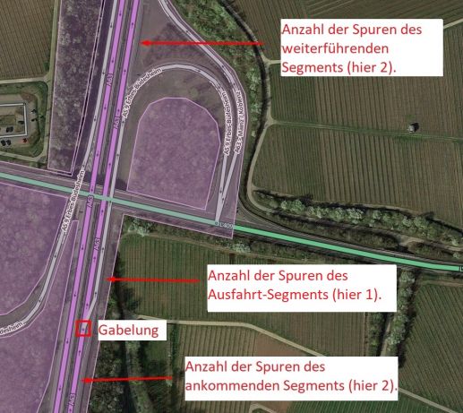 - Wenn sich die Spuranzahl innerhalb eines Segmentes verändert, hat das am problematischen Gabelungspunkt keine Auswirkungen. Wie sich die Spuranzahl innerhalb eines Segmentes verändert ist somit egal.