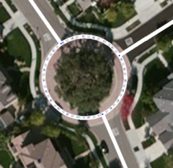 Când desenați un segment de drum care începe și se termină la aceeași joncțiune, este posibil ca cele de mai sus să nu funcționeze și, dacă se întâmplă acest lucru, restricțiile la acea intersecție vor fi greșite. Tăiați segmentul de buclă undeva de-a lungul lungimii sale, urmând instrucțiunile din secțiunea Tăierea unui segment. Apoi se alătură sfârșitul segmentului rămas la joncțiunea comună și se aplică restricții normale de viraj.