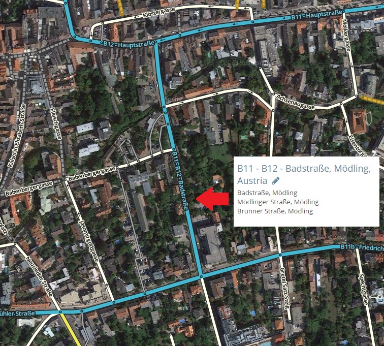 - Urban Areas (where the road is given a street/address name IRL): (Example B129 crossing Linz)
