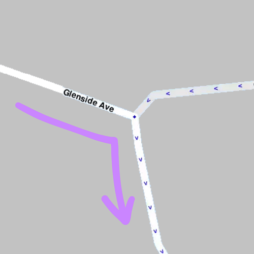 Speculation note: This is unconfirmed Turns with angles greater than 150° will follow the same instruction path as 45.14°-150°, but the Waze routing server will penalize this turn, and avoid routing through it. |