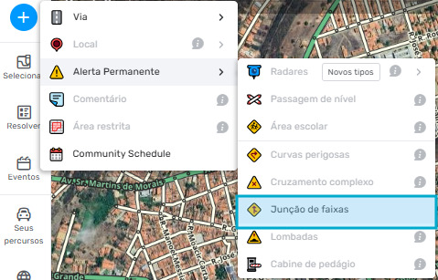 - Após habilitar a camada, selecione o tipo de alerta “Junção de faixas”