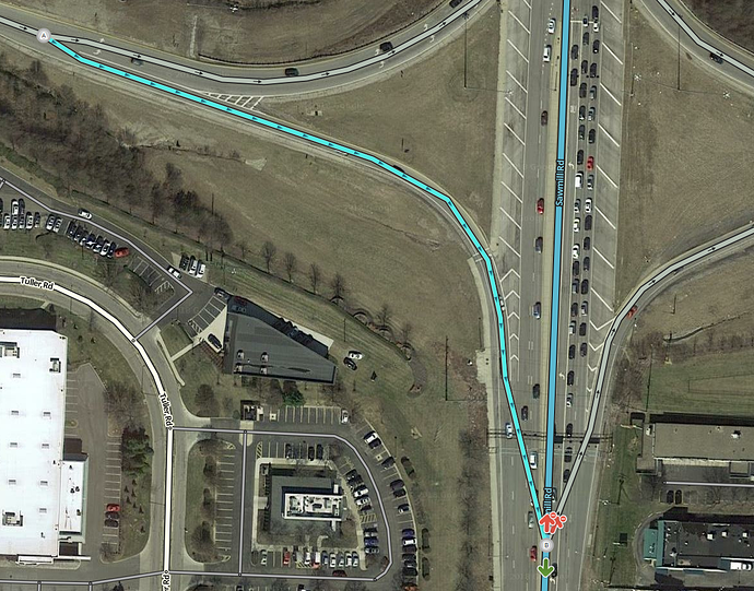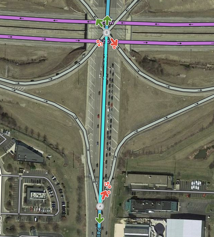 If the ramps connect to the surface street at multiple points, restrict turns which should use another ramp. Review the section on ramp geometry and complexity for more details on this topic.