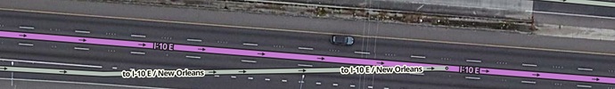 - Ramp segments are relatively thin but show at wide zoom levels, so interchanges do not distract from highways but can be seen at high speeds.