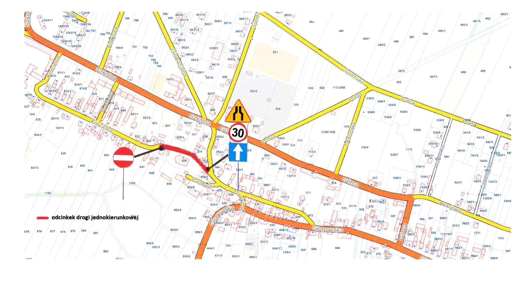 Powód: zmiana na odcinek drogi jednokierunkowej z dnia 30 września 2024 r.