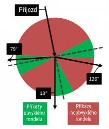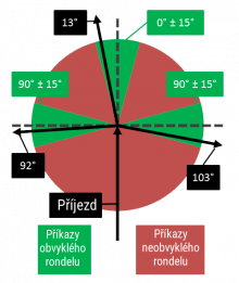 Uhol vektora samotného segmentu pripojeného do kruhového objazdu nemá vplyv na určenie typu kruhového objazdu:
