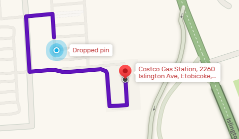 I replied asking where he started but i believe he started his route in the parking lot but because the segment going into the gas station is so far from the intersection and has turn disabled from the other segment it gives a strange route to the gas station. I understand why the segment into the gas station starts where it does but the intersection close to the gas station you can make a left from into the gas station and that’s why i believe he started in the parking lot of costco and tried to go get gas but it gave him a weird route
