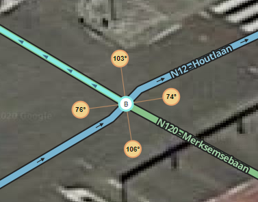 On complex junctions. Example there are 2 segments on the right (first with an angle of <90° and the other one with an angle of > 90°