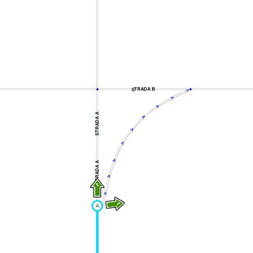 NOTA. Quando si è certi che una giunzione di transizione non abbia motivo di esistere, essa va eliminata. Avremo così diversi vantaggi: semplificazione della mappa, meno svolte (attivate) da gestire e riduzione del fabbisogno di calcolo del motore di routing.