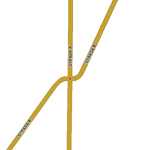 Per risolvere il problema, e rispettare la geometria della strada, dobbiamo impostare un diverso angolo di attacco, modificando i nodi geometrici del segmento della strada che incrocia e creando un angolo tra i 45 e 90 gradi, come in questa immagine: