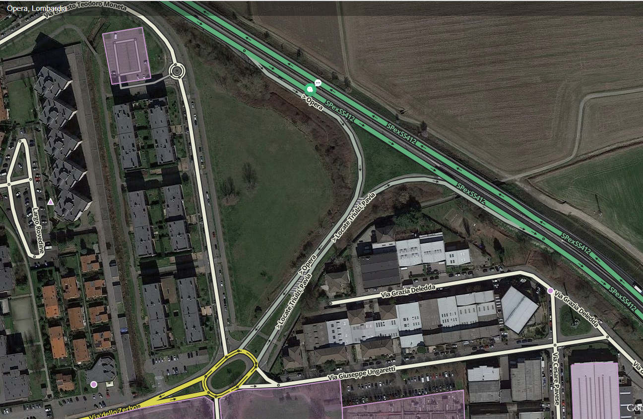 Tutti i segmenti della deviazione devono essere nominati. Se vi sono segmenti senza nome in entrata/uscita collegati tra di loro (direttamente o tramite altri segmenti non denominati, per esempio una rotatoria), il sistema di prevenzione delle deviazioni (Detour Prevention System) non funziona. Di conseguenza per evitare deviazioni tutti i segmenti in entrata ed uscita da una strada con lo stesso nome entro il raggio di detour devono essere nominati. Per comprendere meglio il concetto, vedi quest’esempio: le rampe sono ora entrambe denominate (vedi figura 1) e quindi l’algoritmo individua correttamente la (errata) deviazione dal percorso principale (vedi figura 2). In precedenza erano invece senza nome (vedi figura 3), così come la rotatoria, quindi per Waze il giro rampa di uscita - rotatoria - rampa di ingresso era equivalente al proseguire sulla strada provinciale, avendo tempi di percorrenza in alcuni casi leggermente migliori.