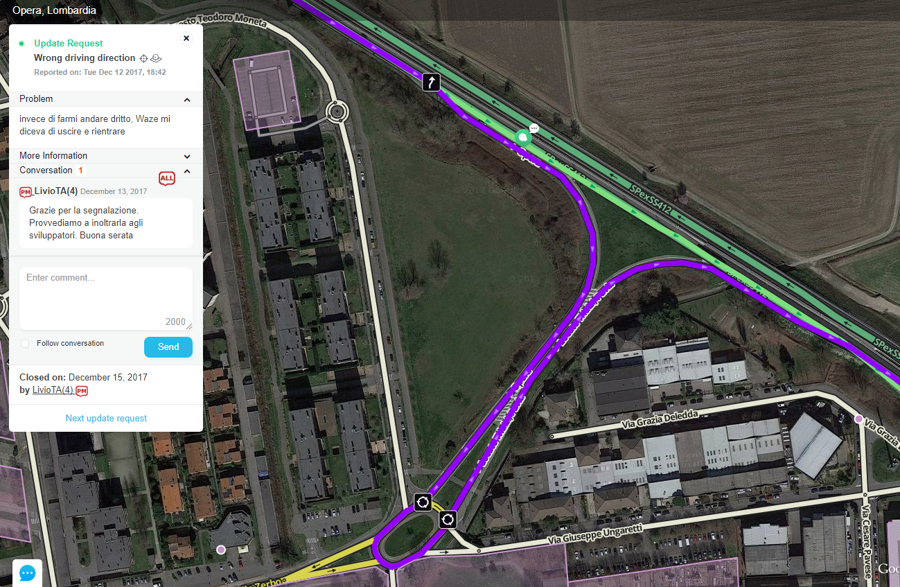 Una regola importante di editing è che un segmento NON deve mai iniziare e terminare sulla stessa giunzione. Sulla mappa è possibile trovare di tanto in tanto alcuni loop (importati con il basemap), ma è semplice verificare con WME che, se proviamo a congiungere un segmento al suo inizio, avremo un risultato di errore e sarà impossibile il salvataggio. Per lo stesso motivo non è possibile creare una rotonda con una sola uscita.