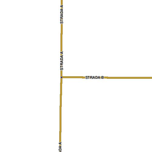 Nell’esempio sottostante abbiamo la più semplice e ideale delle giunzioni: tra due strade a doppio senso di marcia che si incrociano perpendicolarmente tra di loro e con tutte le svolte consentite.