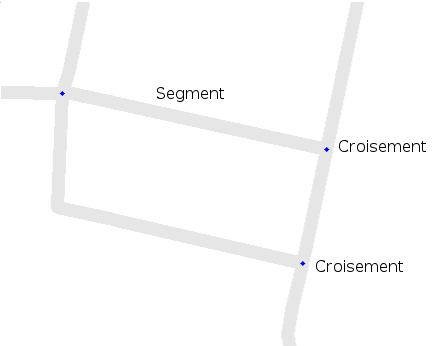 Dans Waze Map-Editor, nous utilisons des segments pour dessiner de nouvelles rues. Comme expliqué ci-dessus, un segment est limité, dans notre cas, par un croisement.