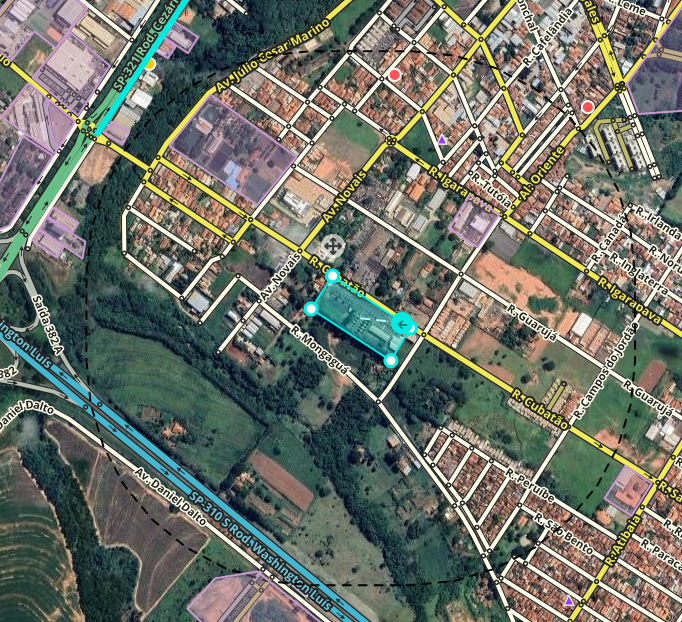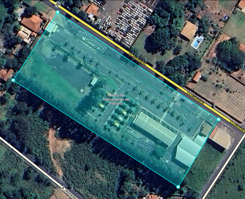 Os locais do tipo Área são representados como polígono. Assim como os segmentos, estes polígonos podem ser ajustados por meio dos pontos de geometria.