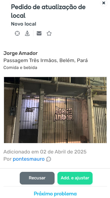 Se algum dos detalhes do Local estiver incorreto, recomenda-se recusar a atualização e criar o Local manualmente com os dados corretos.