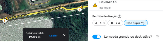 - Ao incluir uma lombada em uma via duplicada, certifique-se de incluir também no sentido oposto, caso a lombada se estenda em toda a largura da via.