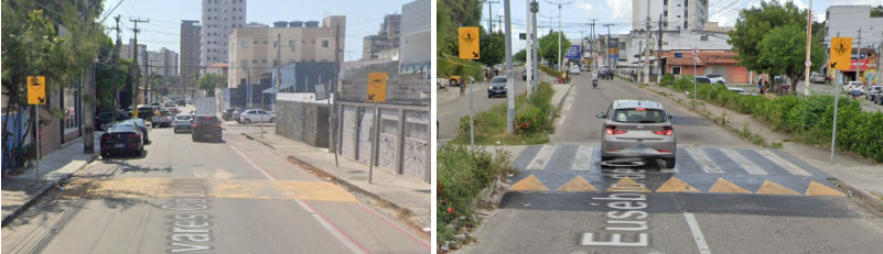 - Nunca mapeie como lombada quando a via tiver um rebaixo contínuo na sarjeta formando uma depressão na interseção, isso não é considerado uma lombada.