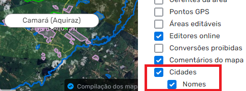 - Primeiramente tem que habilitar a camada “Cidades” e “Nomes”: