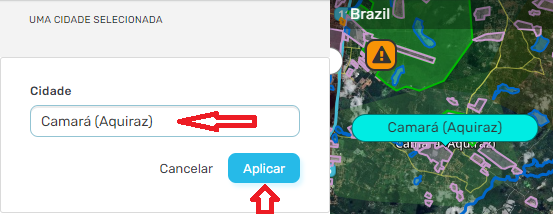 - Clicar sobre o nome da Cidade/Distrito que desejas fazer a correção (nome ficará em tom azul), que irá aparecer (painel esquerdo) a opção de editar (lápis); clicando no “lápis”, abre a janela para editar; após corrigir a grafia, clicar em “Aplicar” e depois “Salvar”.