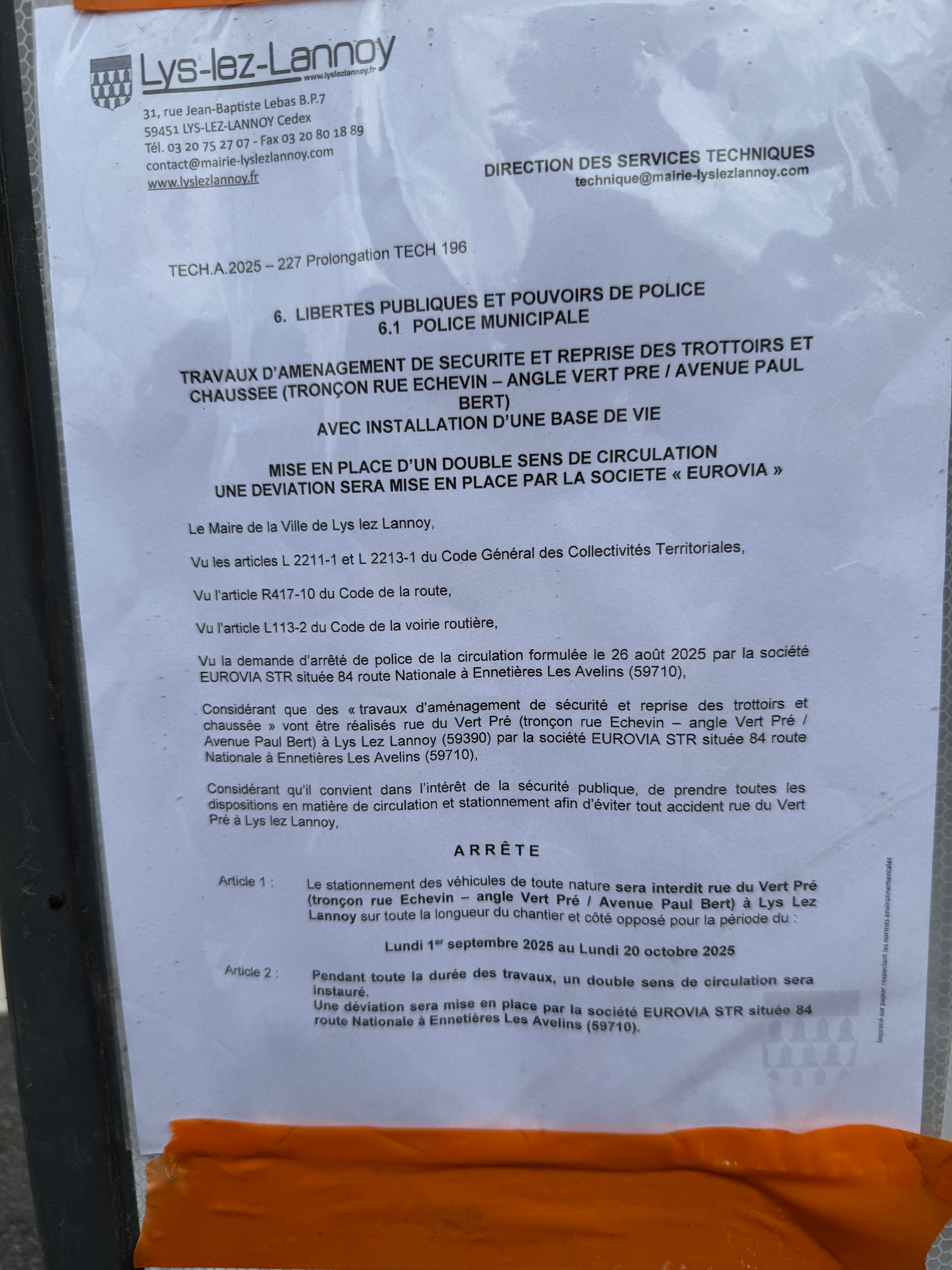La rue du vert pré est fermée de la rue franklin à l’avenue Paul Bert: