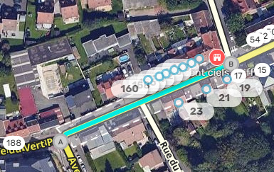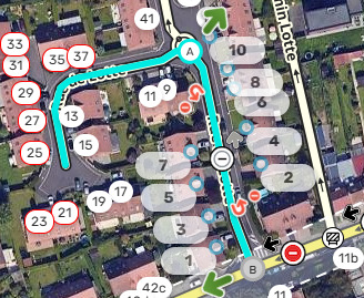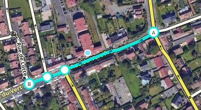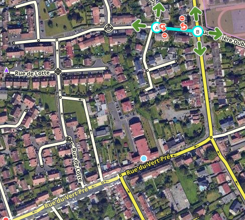 La rue de Lotte est en sens unique de la rue du vert pré au rond point de la rue de Lotte (Sens B vers A):