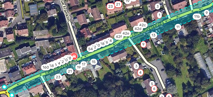 La rue du vert pré est en double sens le temps de la phase 2 des travaux (entre rue de Lotte & Rue Franklin):