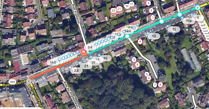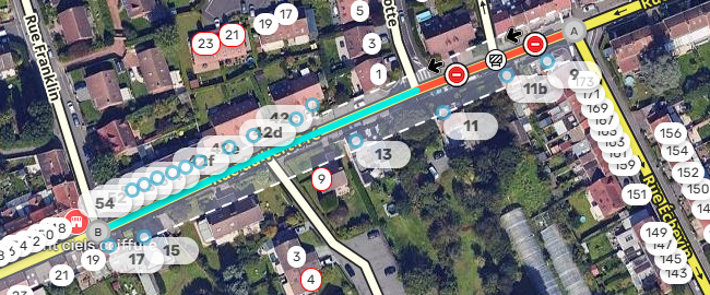 Sur le reste de la rue du vert pré, entre la rue Franklin et l’avenue Paul Bert, la circulation est mise en double sens le temps des travaux.