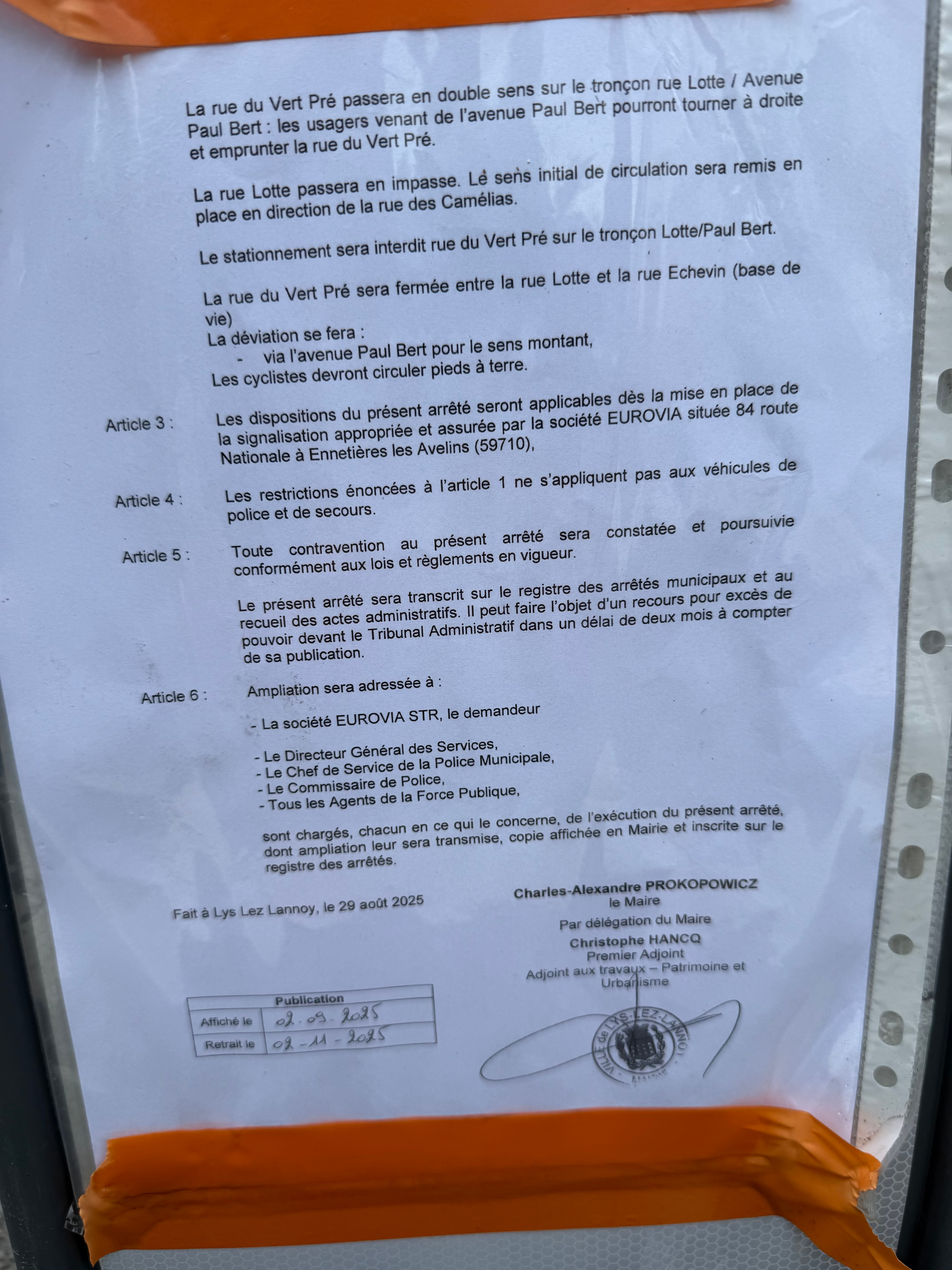 L’affichage vient d’être installé. ainsi que les dispositifs de circulation spécifiés dans la communication de la MEL.