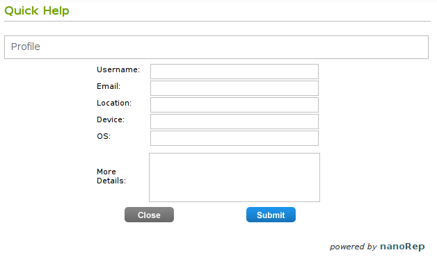 Quick Help auf der Supportseite