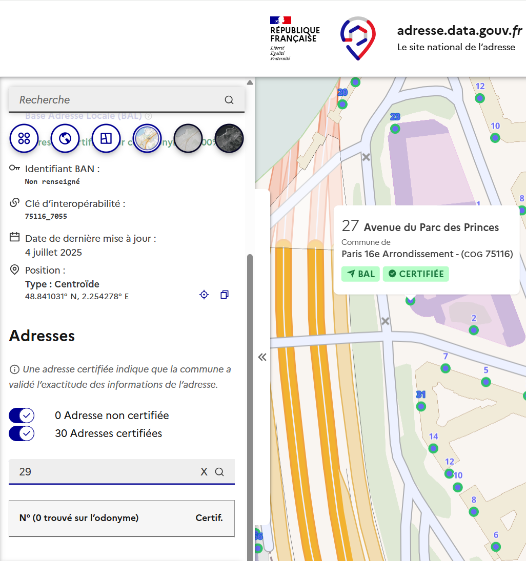 Entre temps, un éditeur, JonhDoe75 a ajouté le 29 dans waze ce qui devrait résoudre le problème des recherches par cette adresse. Attendre environ 48h avant de refaire un test dans waze le temps que la carte soit mise à jour.