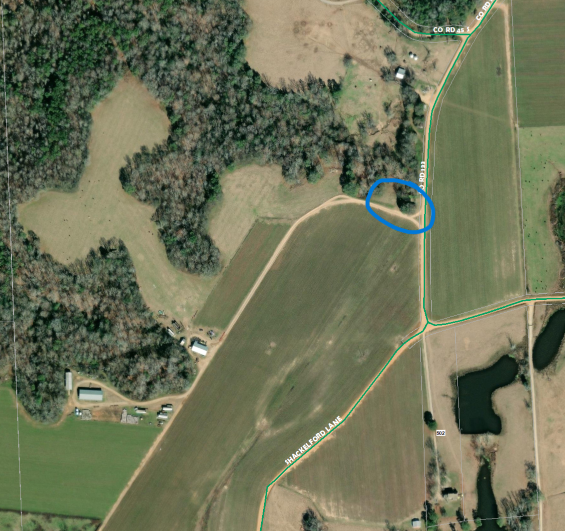 On the photo that you sent, I noticed the 486 IS in the correct spot; the road leading around to where the purple triangle is shown is a barn, so don’t want to mislead deliveries, thinking they need to go to the barn! I’ve attached a better aerial photo, showing the small farm office of 486 CoRd 133 (circled in blue) as it sits right beside the road. This is the location we want drivers to find when they search us in WAZE