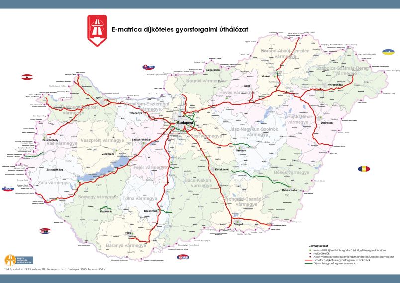 Magyarország területén az úthasználati jogosultság személyautók számára idő alapú matricával váltható meg. A díjköteles és díjmentes szakaszok listáját a Nemzeti Útdíjfizetési Szolgáltató Zrt. honalpján találjátok. Ezen belül az aktuálisan hatályos ITM rendelet (a használati díj megfizetése ellenében használható autópályákról, autóutakról, főutakról és azok díjáról) az irányadó.