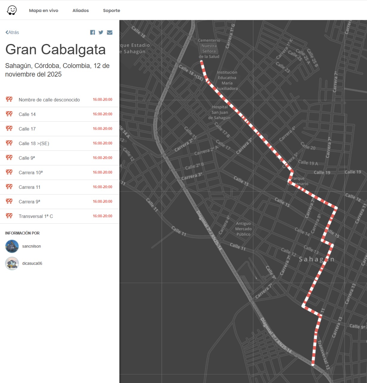 Se Programan cierres viales, este 12 de Noviembre de 2025 en Sahagún- Cordoba, por motivo de la Gran Cabalgata, con ayuda de @sancnilson.