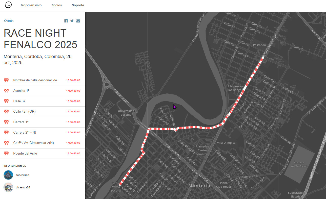 Se Programan cierres viales, este 26 de Octubre de 2025 en Montería- Cordoba por motivo de la carrera RACE NIGHT FENALCO 2025, con ayuda de @sancnilson