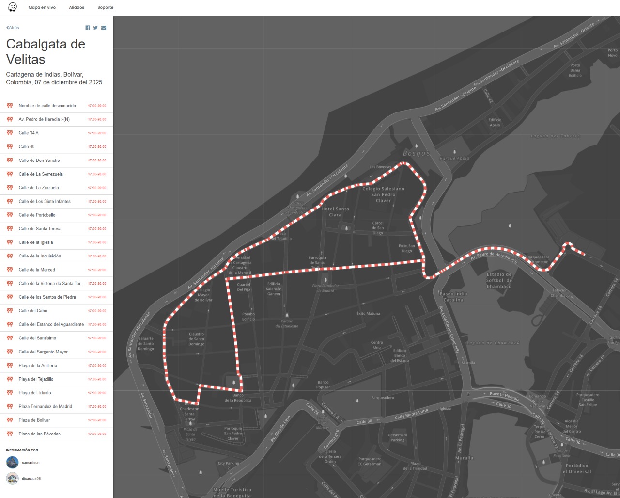 Se Programan cierres viales, este 07 de Diciembre de 2025 en Cartagena- Bolivar, por motivo de Cabalgata de Velitas, con ayuda de @sancnilson.