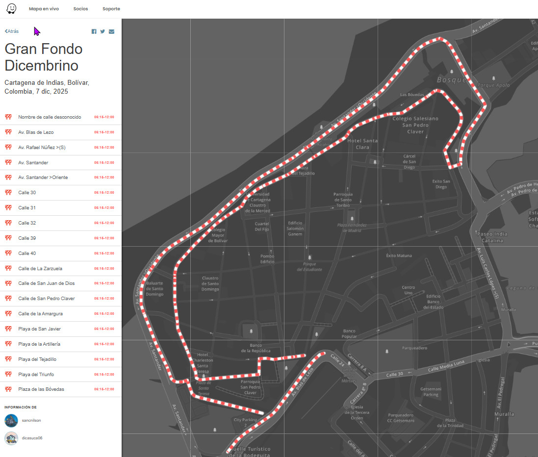 Se Programan cierres viales, este 07 de Diciembre de 2025 en Cartagena- Bolivar, por motivo de la Carrera, Gran Fondo Dicembrino, con ayuda de @sancnilson.