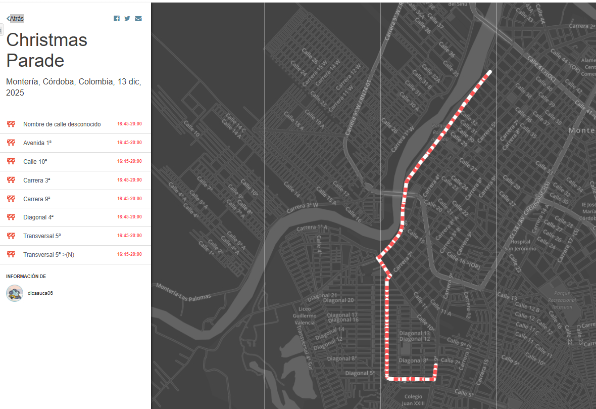 Se Programan cierres viales, este 13 de Diciembre de 2025 en Montería- Cordoba, por motivo de Desfile Navideño.