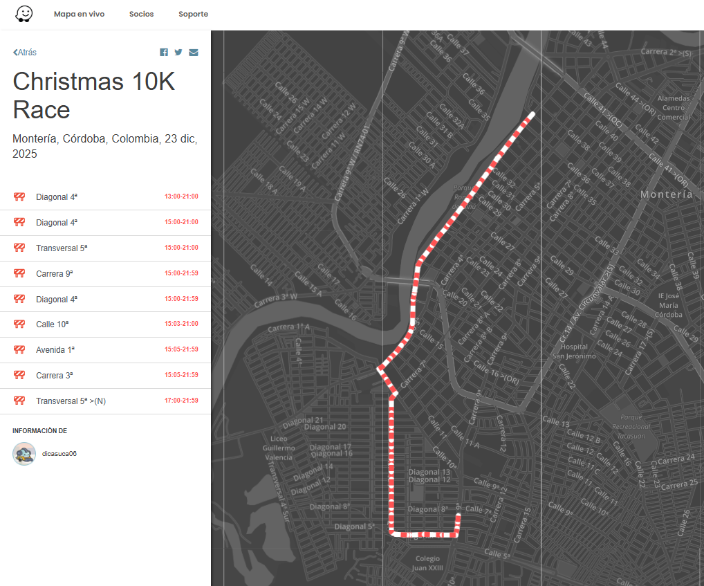Se Programan cierres viales, este 23 de Diciembre de 2025 en Montería- Cordoba, por motivo de Carrera Navideña 10 K