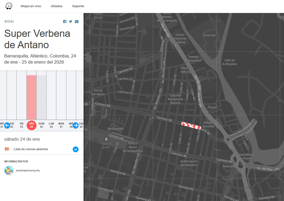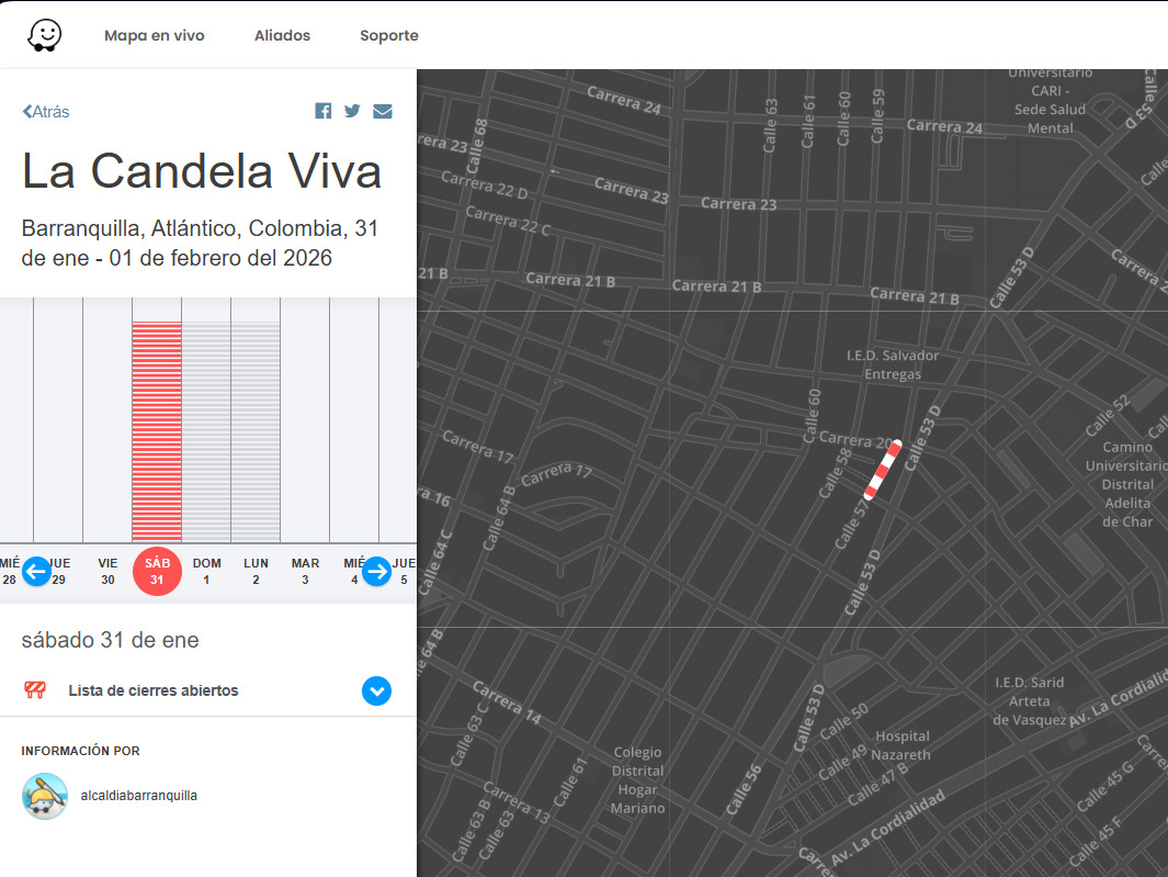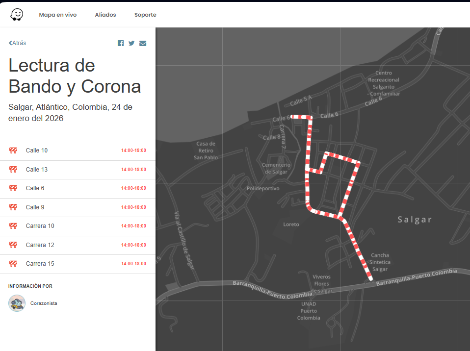 Próximo sábado 23 de enero, cierres por Lectura del Bando y Coronación en Salgar, Puerto Colombia, Atlántico. Información del Partner