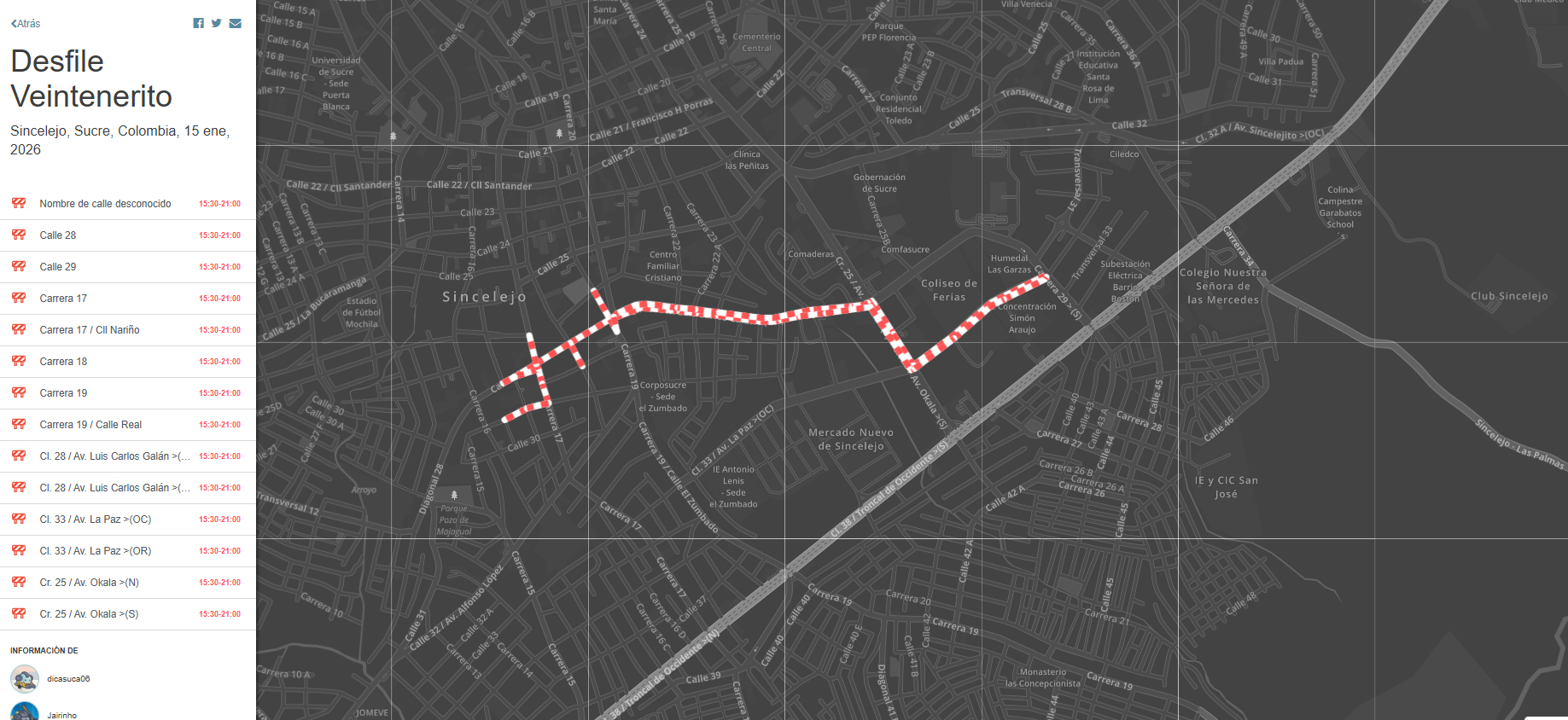 Se Programan cierres viales, este 15 de Enero de 2026 en Sincelejo - Sucre, por motivo de Desfile Veintenerito, en el marco de las Fiestas del 20 de Enero en esa ciudad; con ayuda de @Jairinho (6)