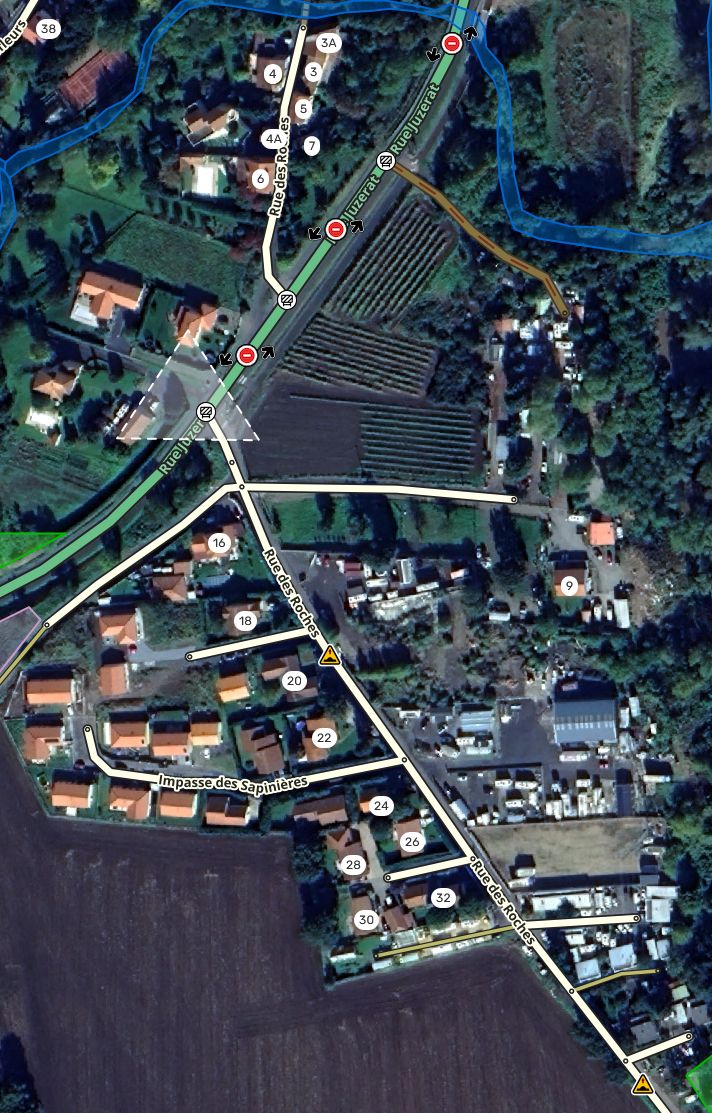 MAIS sur le terrain, les responsables du chantier ont peur que Waze ne crée une déviation officieuse qui enverrait trop de trafic dans la partie sud-est de la rue des roches (au bout, y a le camping, les terrains de sports et un site naturel pas mal fréquenté).