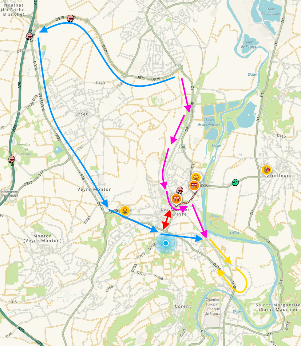J’ajoute que des travaux vont commencer un peu plus loin dans quelques jours, qui mettront en place une autre déviation, qui renverra le flux sur la même zone que la déviation déjà en place… Renforçant le risque que Waze trouve des alternatives inadaptées.