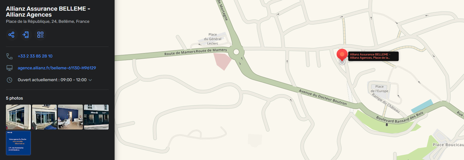 Je me permets de vous relancer car j’ai toujours besoin d’aide concernant l’adresse de l’agence Allianz Belleme dont je suis incapable de modifier.