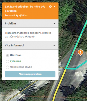Připomínáme, že pokud označíte MP jako Nenalezena chyba, Waze skryje hlášení i dalším editorům. Pokud si nejste jisti zvolte raději možnost Otevřeno.