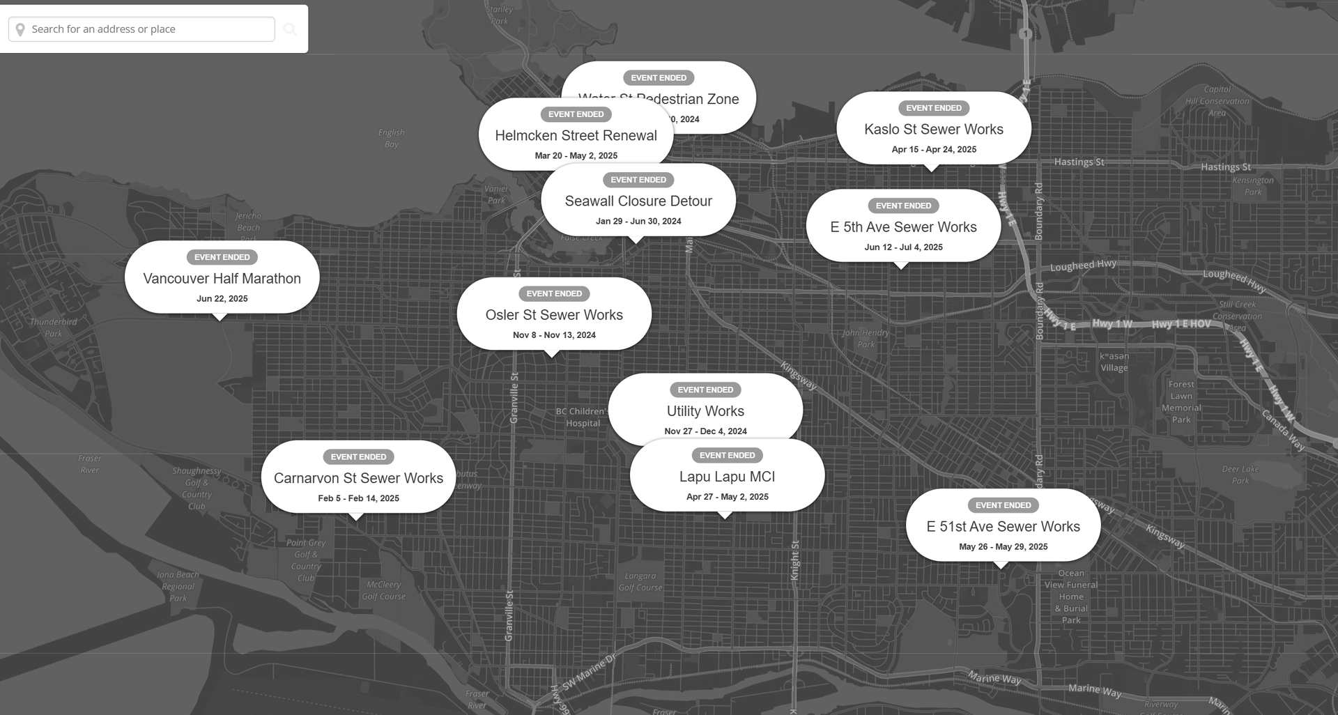 When adding a closure we should only see active events.