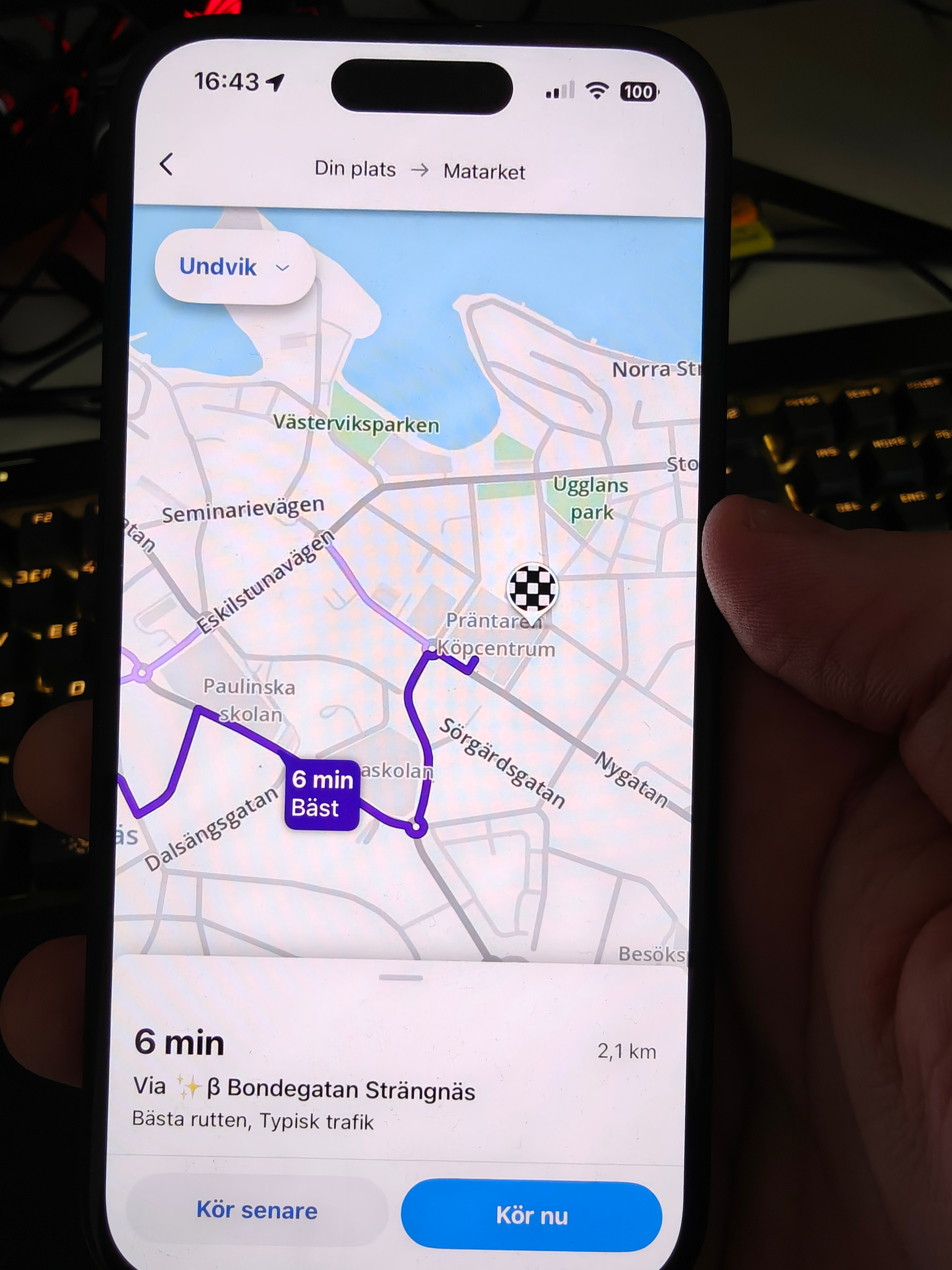 Testade detta på jobb-iphonen men jag får bara likt på droiden en rutt till närmsta entrypoint , testade mot Matarket i Strängnäs, huvudpointen är mot Trädgårdsgatan, men som ni ser får jag den på Nygatan