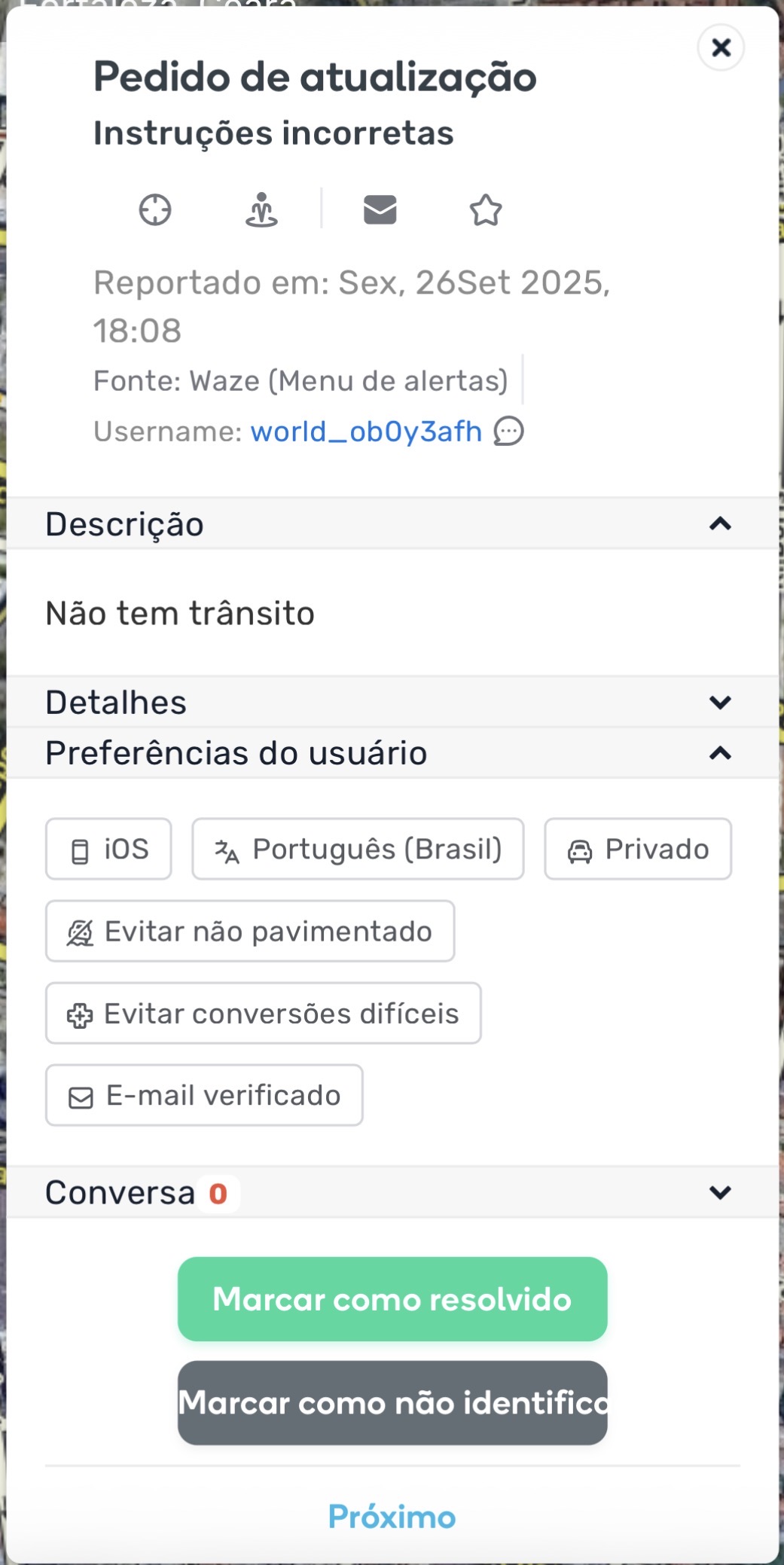 Resolva os Pedidos de Atualização (URs) mais rápido e com menos suposições! Agora os nomes de usuário aparecem nas URs, facilitando o contato com o autor pelo chat, caso precise de mais informações. Saiba mais.
